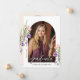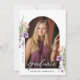 This photo graduation announcement is accented with peach and purple flowers and lush greenery. The elegant layout includes space for two photos and is adorned with delicate handwritten script. Personalize the back with graduation announcement and future plans.