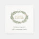 The clean, minimalist layout is finished with a modern, spaced-out Lato typography at the bottom, reading “Celebrating with…” followed by your custom family name. These napkins are a sophisticated choice for a formal Easter brunch or a garden party, blending modern Christian minimalism with a fresh, natural aesthetic. The text is written with a dark moss green ink.