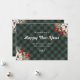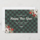 Green buffalo plaid New Year card featuring snowflakes and a watercolor painting of poinsettia, holly and red berries. Easily personalize online.