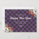 Purple buffalo plaid New Year card featuring snowflakes and a watercolor painting of poinsettia, holly and red berries. Easily personalize online.