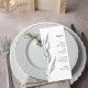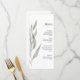 The vertical layout highlights each course of the meal under a simple “Menu” heading, creating a stylish and easy-to-read presentation for your guests. The delicate greenery artwork adds a fresh organic feel that perfectly complements modern, garden, and rustic elegant weddings.