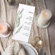 Add a refined botanical touch to your reception tables with this elegant minimalist greenery wedding menu card. Featuring a soft eucalyptus-style leaf illustration and clean modern typography, this design blends natural beauty with timeless sophistication.