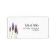 These botanical wedding return address labels feature a soft lavender floral illustration and a clean, elegant layout.
