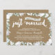 Denna eleganta, moderna inbjudan till 35-årsjubileum har vacker penselskrift kalligrafi, vackra blå och vita blommor, typografi som lyder "Just nyss gifta (för trettiofem år sedan!)", och en tryckt kraftpapperbakgrund.