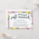 Denna eleganta, moderna inbjudan till 70-års bröllopsdag har vacker penselskrift kalligrafi; vackra rosa, lila och gula blommor; och rustik typografi som lyder "Just gifta (för sjuttio år sedan!)."