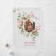 Skicka tidlösa julhälsningar med mitt viktiga kort "Merry Bright" med botanisk akvarell i röda bär. Denna eleganta design har en vacker krans av röda julbär och tallgrenar i en delikat akvarellstil. Den klassiska typografin "Merry & Bright" fullbordar detta sofistikerade utseende och gör det till ett perfekt, traditionellt val för dina familjehälsningar.