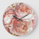 BOTANICAL BLOMMIGT PEONY Namn Monogram Large Wall Clock - Dekorera ditt hem i stil med denna vackra väggklocka med en vacker bukett av rosa ros och peony, över en vacker rosa och blå vattenfärgad bakgrund. En elegant, vit, genomskinlig lagrar som gränsar till ett invändigt faux-löv-streck ram i namn, i vacker grått-manustypografi. Den här designen är lätt att anpassa och ger henne en underbarare gåva. Lägg bara till ditt namn.