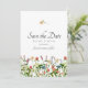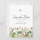 Botanisk Blommigt sparar datumkortet. Designad med visblommor med flera färgader med stilisering av vattenfärgstyp. Det här är en utformning av blommigten land-stil är en vacker introduktion till bröllop. Anpassa den här designen med ditt namn, bröllop-datum och alla andra anpassningsbar som du vill inkludera! Bakgrunden färg är vit, men du kan välja en fyllning färg efter eget val.