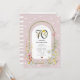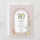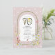 Följ med oss på en fantastisk firande av vår kunds 70-årsdag! Vår eleganta botaniska inbjudan har en vacker dammig rosa bakgrund översållad med ömtåliga vita prickar. Dekorerad med en charmig akvarellbåge med livfulla vår- och sommarblommor och prydd med förtjusande vilda djur som fladdrande fjärilar och små nyckelpigor. Anpassa den redigerbara mallen med dina egna evenemangsuppgifter för en personlig touch. Perfekt för våra trädgårdsvänner som njuter av konsten att pyssla i krukor!