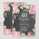 Botanisk blomsteröverraskning 40-års födelsedagsinbjudan. Rosa blommor födelsedagsinbjudan för kvinnor. Vattenfärg blomma. Elegant rosa ros och pionblommor. Vuxen födelsedag. Svart tavla bakgrund. Svart och vit. 13:e 15:e 16:e 18:e 20:e 21:a 30:e 40:e 50:e 60:e 70:e 80:e 90:e 100:e, Alla åldrar. För ytterligare anpassning, klicka på "Anpassa"-knappen och använd vårt designverktyg för att ändra denna mall.