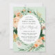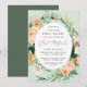 Vackra Bat mitzvah inbjudningar med en elegant modern neutralt pastellfärgad botanisk blommigt grey ram i mjuka jordtoner av persika, orange, mjuk , och mängder av grönt från sage grönt till ljusa och djupare gröntar. Din personlig visas i en förhöjd typografiklayout som placerar den söta flickan framför och i mitten.