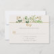 Gröna blad, eucalyptus och guldknoppar på en elfenbensvit bakgrund kompletterar dina RSVP-detaljer. Baksidan av kortet är mörkgrön. Textfälten är lätta att anpassa med din egen information. En blandning av moderna typsnitt och kalligrafiska teckensnitt gör detta till ett perfekt svarsbrev för bröllop.
