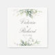 Vackra bröllop-blöjor med vattenfärgad eukalyptus och guld löv.