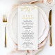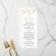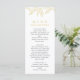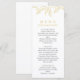 Presentera din middag på bröllopet på ett stilfullt och elegant sätt med detta botaniska falska guldbröllopsmenykort. Designen har en ren vit bakgrund med ömtåliga bladguldaccent, som skapar en förfinad och tidlös look.