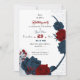 botanisk födelsedag för elegant marin och röd blom inbjudningar