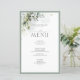 Botanisk grön Blommigt Watercolor Bröllop Menu