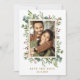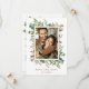 Denna bröllopsfoto spara datum inbjudan har målad akvarell eukalyptus, gröna blad, röda bär, tallgrenar och en falsk guld rektangel ram med anpassad text på baksidan. För mer avancerad anpassning av denna design, klicka på "Anpassa ytterligare" länken. Matchande artiklar finns också tillgängliga.