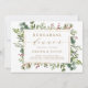 Denna inbjudan till övningsmiddag har målad akvarell eukalyptus, gröna blad, röda bär, tallgrenar och en falsk guld rektangulär ram med stilig kalligrafi. För mer avancerad anpassning av denna design, klicka på "Anpassa ytterligare"-länken. Matchande föremål finns också tillgängliga.
