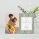 Med känsliga akvarellblad på en salviagrön bakgrund kan denna eleganta botaniska bröllopsinbjudan anpassas med era speciella foton och detaljer från den stora dagen. Designad av Thisisnotme©