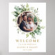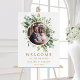 Denna vigsel välkomstskylt har en målad akvarell eukalyptus, gröna blad och ett foto med en guldkretsram. För mer avancerad anpassning av denna design, vänligen klicka på "Anpassa ytterligare"-länken. Matchande föremål finns också tillgängliga.
