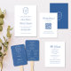 Botanisk havsblå monogramstämpel & script bröllop inbjudningar