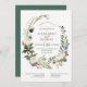 De här elegant bröllopsinbjudningarna för helgdag har en rustik vattenfärgsutandning med pinekoner, grenar, bär, löv och vit ros.