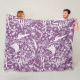 Modern botanisk löv och blomma mönster i vitt på lila. Originalkonst av Nic Squirrell.