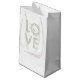 Denna gåva hänger lös designsärdrag en grafisk blommigt av ordkärleken i mjuka pastellfärgade färger på en vitbakgrund. En söt lovebird är perched insida en av alfabetbreven. Tillfoga dina namn, och bröllop daterar.