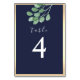 Botanisk marinblå bröllop bordsnummer