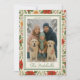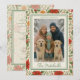 Denna elegant designade klassiska julhälsningskort har säsongsbetonade botaniska element såsom gröna järnekblad, röda bär, klassiska julstjärnor, julmistel, kanelpinnar och orangeskivor. Det ger utrymme för att anpassa framsidan med ditt familjefoto och innehåller ett personligt meddelande på baksidan. Genom att kombinera utsmyckade och stilrena vintageelement är detta kort perfekt för att dela julmeddelanden och önskningar i en traditionell botanisk stil, vilket gör det till ett utmärkt val för ett charmigt och sofistikerat julfirande.
