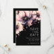 Botanisk Modern Elegant Black Rosa Blommigt Bröllo Spara Datumet