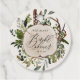 Konstruktion av botaniska möhippor i Rustic bröllop och träskivor. Med vackra vattenfärgade blad, vita blommigtar, träsegment och manuskript. Den här moderna designen kommer säkert att ställa in stil för din kommande dusch.