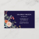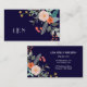 En färgrik sprej av grafiska botaniska blommor dekorerar denna visitkort, och den kan personifieras med tre monograminitialer på bekläda. Bakgrunden är rika marinblåa och motsatssidohåll all din information om kontakten.