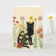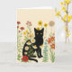 Botanisk natur – svart katt i vildblomsterträdgård kort