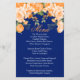 Botanisk Orange & Marinblå Blommig Bröllopsmeny