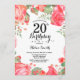 Botanisk röd blommig 20-års födelsedagsinbjudan inbjudningar