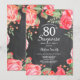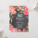 Botanisk röd blomsteröverraskning 80-års inbjudan. Rosa peonblommor födelsedagsinbjudan för kvinnor. Vattenfärg blomster. Eleganta rosa rosor och peonblommor. Vuxen födelsedag. Svart tavla bakgrund. Svart och vit. 13:e 15:e 16:e 18:e 20:e 21:a 30:e 40:e 50:e 60:e 70:e 80:e 90:e 100:e, Alla åldrar. För ytterligare anpassning, klicka på "Anpassa" knappen och använd vårt designverktyg för att ändra denna mall.