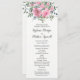 Dessa ceremoniprogram i elegant bröllop har vattenfärgsdamm av blommigt i rosa ros och eukalyptus foliage. Kortets framsida har ceremonin och baksidan av kortet listar brudens sida. Matchningsprodukter finns också tillgängliga.