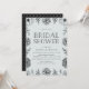 Elegant vintage blomsterbröllopsinbjudan har en ljusblå bakgrund med en svart botanisk kant bestående av handritade blommor och blad. Designen har ett trendigt vintage-teckensnitt som säkert kommer att göra intryck på dina gäster. Anpassa inbjudan genom att lägga till dina detaljer om bröllopsfesten.