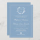 Botaniskt vapensköld i monogram, klassiskt, dammigt blåbröllop med QR-kod och mer detaljerad information på baksidan.