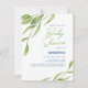 Den här eleganten och den enkla designen har handmålade vattenfärgsmönster och löv med klassisk blå text över en vit bakgrund. Du kan enkelt ändra texten färg och färg i bakgrunden för att matcha händelsen. En inbjudan till perfekt till babydusch för ett botaniskt evenemang, en grönt, en utomhushändelse eller ett rent tema.