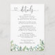 Elegant botanisk grönska Bladverk DETALJER Hjärtformad Bröllopsbiljett