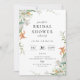 Modern och elegant vattenfärgsblommigt arrangemanga ram, inbjudningskort för möhippan. Kortet har modern typografisk utformning av stil-mallen och samordnar sidbacken grönt färg. Elfenbensvit och orange lever med ömtålig trädgårdsgrej.