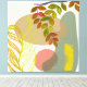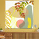 Botaniska boho-konstruktioner med magenta, grönt, gult och brunt färg och blommigt inslag.