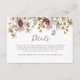 Vår inklusionskarta "Botanical Bordeaux Watercolor Wedding Details" erbjuder ett vackert och raffinerat sätt att förmedla alla de väsentliga detaljerna om er bröllopsfest. Den visar mjuka akvarellblommor längst upp och kombinerar snygg modern kalligrafi med smakfull typsnitt på en krispig vit bakgrund. Kortet är helt anpassningsbart med er bröllopsinformation, vilket säkerställer att era gäster har allt de behöver till er stora dag. En djärv Bordeaux-rektangel längst ner tillför en touch av sofistikation och rik färg. Genom att kombinera elegans och funktionalitet är detta kort det perfekta tillskottet till alla romantiska eller blomsterinspirerade bröllop.