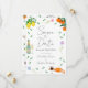 Vackerlig, modern, färglös inbjudan till bröllop spara datum med enkla botaniska boho, orange och citrustema som är idealiskt för en solig sommar bröllop. Konstverket Catherine Sweetman, som är konstnären, har bland annat lövning, blommor, ost och vin, musik noter och bubbelflöjt. Whimsical handskrift och modernt typografiskt skript som är lätt att anpassa mallar för att lägga till namn, datum och annan viktig information tillsammans med briden och groomerna initialer på den mousserande vin flaska-etiketten. Färg omfattar citron, gult, orange, grönt, blått, lila och rosa.