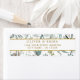 Returetiketterna i anpassadet har guld rand och vattenfärgen eucalyptus löv parad med ett klassteckensnitt i guld.