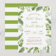 Modern inbjudan med ett botaniskt tema med oro och löv. Luftdesign för en chic brud. Detta tema är perfekt för ett evenemang med ett trädgårds-, botaniskt, sommartema eller ekologiskt tema. Brev är elegant med en lekfull beröring. Baksidan har en rand-patter i samordningen av grönten. Det här är en snyggt- och trendig-utformning som säkert kan muta med en underbar känsla av stil.