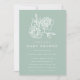 Chic- och snyggt-babyduschinbjudningar med blommigt bouquet och trellis mönster på andra sidan inbjudan. Anpassa gröntens babyduschinbjudningar genom att lägga till mor-till-be-namn och duschdetaljer för en design som säkert imponerar på gästerna.