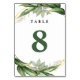 Ställ bord i ett stycke med dessa botaniska kort av elegant med dubbla som har en klassisk chic, vit bakgrund, geometrisk grön löv och små vita blommigtar. Snygg för vår och sommartid bröllop. Anpassa bara varje nummer och lägg till dem separat i kundvagnen.